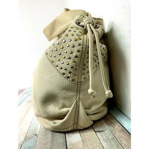 LRG FOSSIL FIFTY FOUR 54 STUD IVORY GENUINE LEATHER HOBO BOHO TOTE SHOULDER BAG