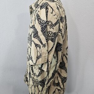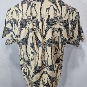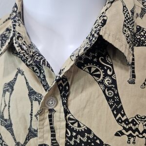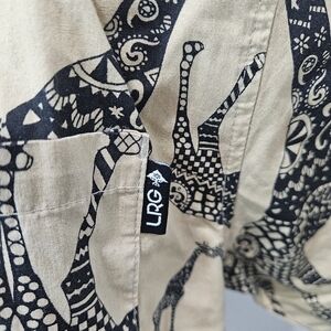 This LRG Giraffe Print men's button-down short-sleeve shirt in size large features a unique animal print design with a giraffe pattern. This shirt is perfect for men looking for a casual yet stylish option with a touch of personality. The button-up style and short sleeves make it ideal for everyday wear, while the multicolor design adds a fun and playful touch to any outfit. Made by the brand LRG, this shirt is sure to make a statement and stand out from the crowd.