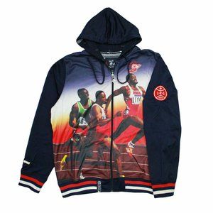 The 47 Catch Up Full Zip Hooded Jacket by LRG is loaded with classic LRG details, 100% Polyester fullzip hoodie with sublimated sprinter motif at front, LRG metal logo zipper pulls, drawstring at hood, cotton lined hood, embroidered patches at chest and back. 100% Polyester. Machine wash cold. Imported. By Lifted Research Group (LRG).