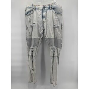 Keywords: LRG jeans, Lifted Research Group, moto jeans, distressed jeans, bleach wash jeans, tapered jeans, mens jeans, size 40, urban style, streetwear, biker jeans, denim pants, casual jeans
