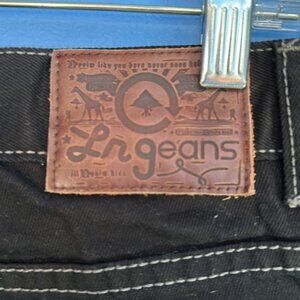 Details: LRG jeans black boot cut with Red, green and gray stitching on the pockets.