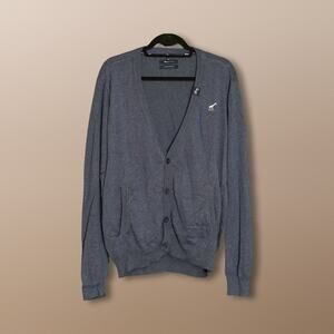LRG Men's Four-Button Blue Cardigan - Size Large