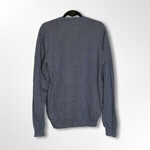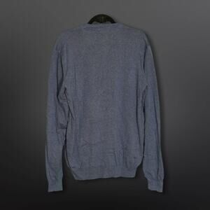 This four-button cardigan comes in a stylish blue color and is a size Large. Perfect for layering or wearing on its own, this cardigan is a versatile addition to any wardrobe.