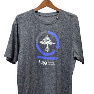 This LRG Men's Graphic T-Shirt in size Large features a solid gray color with a crew neck and short sleeves. Made from a polyester and cotton knit fabric, it has a logo accent on the front. The regular fit shirt is machine washable and suitable for all seasons, making it a versatile piece for summer, fall, and spring wear.