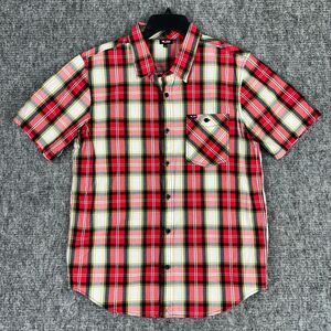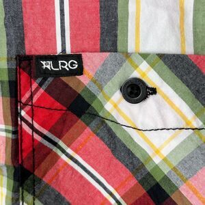 LRG SHIRT MENS LARGE RED PLAID SHORT-SLEEVE BUTTON FRONT EASY CARE CASUAL
