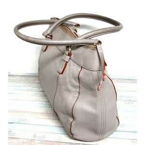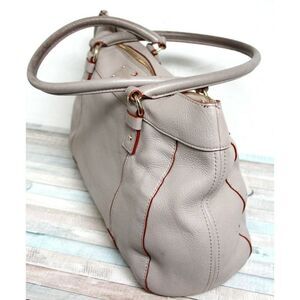 LRG kate spade GRAY GENUINE LEATHER RED TRIM ZIP TOP TOTE SHOULDER BAG HANDBAG