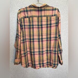 LRL 100% Linen Plaid Cottagecore Lightweight Button Down Top