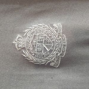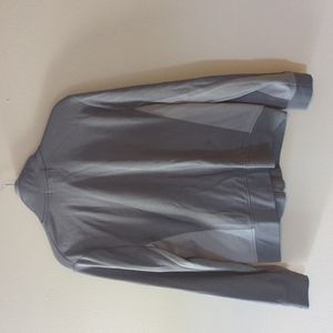 classic Ralph Lauren crest on active jacket. two-tone gray. flattering fit, a little tapered at hip excellent condition