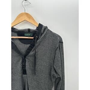 LRL Black Gray Striped Pullover Henley Hoodie Shirt Roll Tab Women XL Cotton