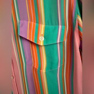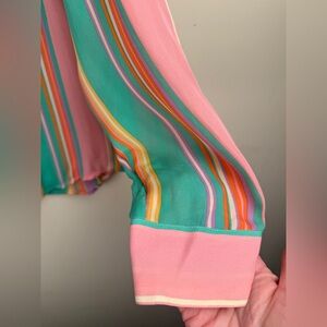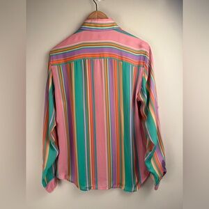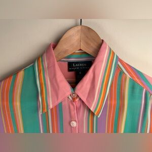 LRL Black Label 100% Silk Rainbow Striped Blouse Roll Tab Sleeve Size 6