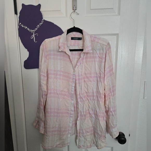 Lauren Ralph Lauren Women's button-fown shirt in pink & cream plaid.