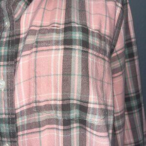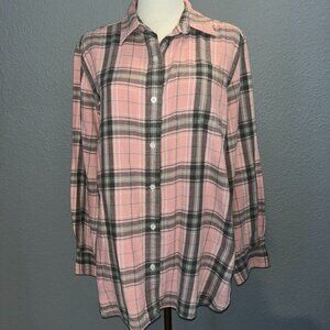 LRL LAUREN JEANS CO. RALPH LAURENT Plaid Flannel Button Shirt Pink & Green - M