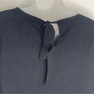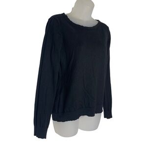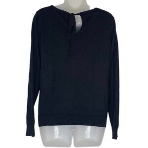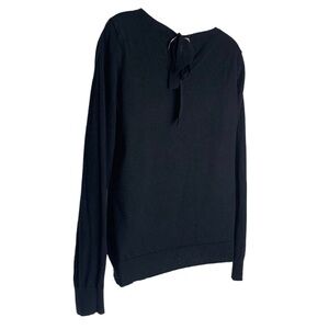 LRL LAUREN RALPH LAUREN Black Silk Blend with Bow Long Sleeve Knit Sweater Sz M