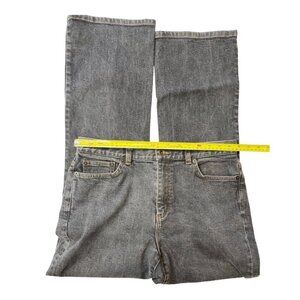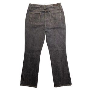 LRL ~ LAUREN by RALPH LAUREN ~ LAUREN JEANS COMPANY PREMIUM ~ Women's premium stretch denim jeans. Size 10. Grey, mid-rise, boot cut jeans with an intricate leather patch and decoratively stitched back pockets.