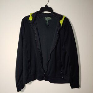 L-RL Lauren Active Ralph Lauren Black With Neon Yellow Hood Jacket Sz XL