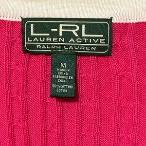 L-RL Lauren Active Ralph Lauren red/white/navy cotton sweater. Size M. Clean gently used condition. Snap front closure. My home is pet free, smoke free, and I rarely cook🤪!