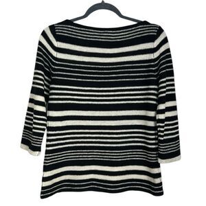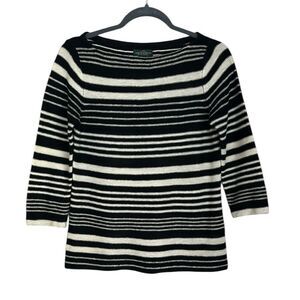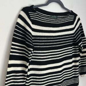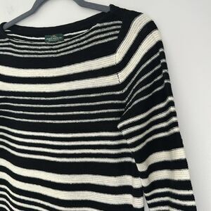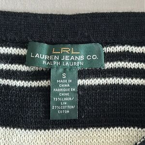 LRL Lauren Jeans Co. Black White Stripe Sweater Linen Blend 3/4 Sleeves Size S