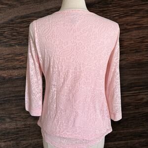 LRL Lauren Jeans Company Women's top 3/4 Sleeve Grown Up light Pink Paisley size M