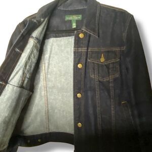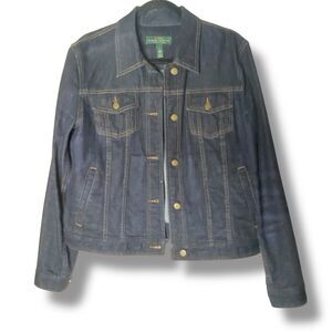 LRL Lauren Jeans Co. Ralph Lauren Large Dark Wash Denim Jean Trucker Jacket Vtg