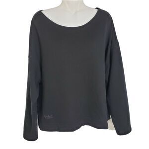 LRL Lauren Jeans Co Ralph Lauren Womens Large Sweatshirt Top Black Ribbed Cropped