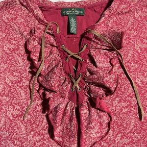 LRL Lauren Jeans Co Red Floral 3/4 Sleeve Lace Up Top