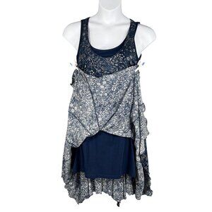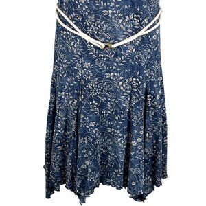 LRL Lauren Jeans Co Womens M Foliage Leaf Tank Dress Rope Belt Handkerchief Hem