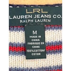 LRL Lauren Jeans Co. Women's Size Med White/Red Long Sleeve V-Neck Striped Top