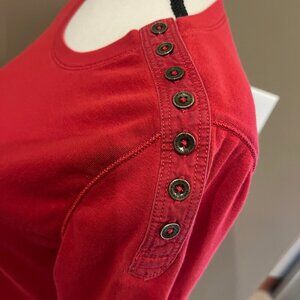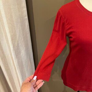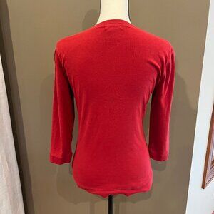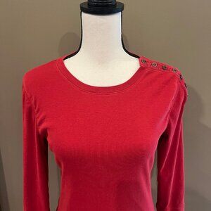 LRL Lauren Jeans Red Long Sleeve Cotton Top, Button Shoulder Detail, Size Medium