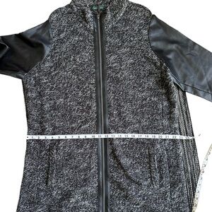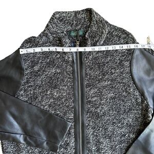 LRL Lauren Jeans Womens Full Front Zip Knit Jacket with Faux Leather Sleeve