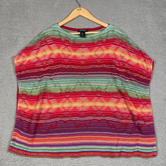LRL Lauren Ralph Lauren Southwestern Poncho Sweater Womens L Multicolor Linen