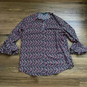 LRL Lauren Ralph Lauren Womens Blouse 1X Top Colorful Peasant Button Office