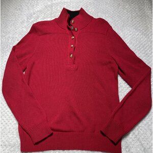 LRL Lauren Ralph Women Red Military Gold Buttons Sweater M Classic Lux