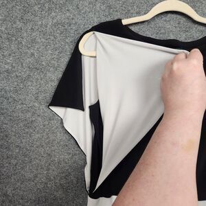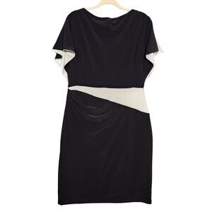 LRL RALPH LAUREN Black White Split Sleeve Asymmetric Stretch Knit Dress SIZE 14