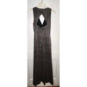 LRL RALPH LAUREN Evening Dress 8P Metallic Gunmetal Gown Crush Open Back Formal