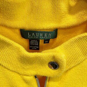 LRL RALPH LAUREN Short Sleeve Full Zip Sweater Jacket Yellow Womens 2X