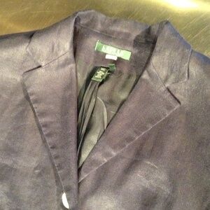 LRL Ralph Lauren 100% Linen Blazer Women’s Size 16 Dark Navy Blue 3 Button Lined