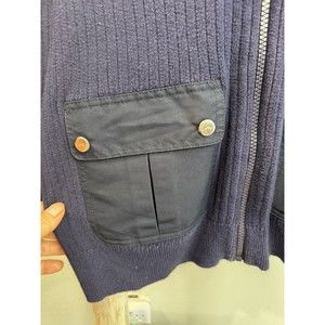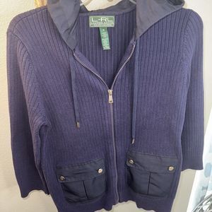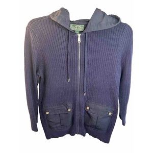 L-RL Ralph Lauren Active Womens Full Zip Ribbed Hooded Navy SweaterJacket Size M