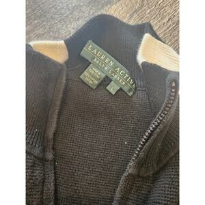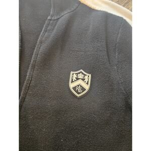 LRL Ralph Lauren Active zip sweater jacket stripe mono logo womens large black