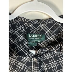 LRL Ralph Lauren Blouse 1X Black White Plaid Bell Cuff Long Sleeve Flared Top Blouse Shirt