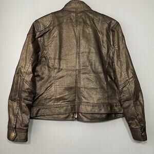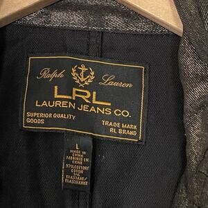 LRL Ralph Lauren Jeans Co long sleeve zip front metallic gold black denim jacket in Excellent pre-owned condition!