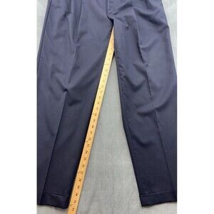 Men's Lauren Ralph Lauren Total Comfort pleated navy blue slacks, actual measurements are 37x32. No holes, rips or tears. Several marks on slacks, please see last 4 photos. Size tag is worn off - no materials label or washing info. Pre-owned. Measurements in photos. Smoke free home.