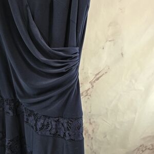 LRL Ralph Lauren Dress Women 18 1X Navy Ponte Lace Faux Wrap Plunge Ruched