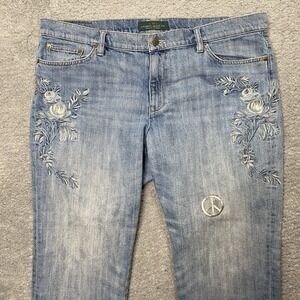 LRL Ralph Lauren Embroidered Cropped Jeans Size 16 Floral Medium Wash