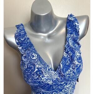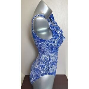 LRL Ralph Lauren One Piece Swimsuit Sz 4 Blue White Underwire Ruffle Womens NEW