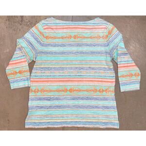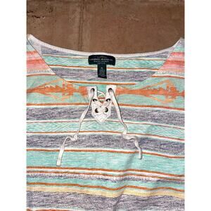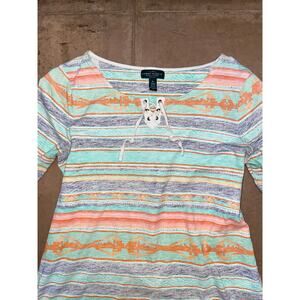 LRL Ralph Lauren Petite Lace-Up Top Multicolor Stripe Western Boho Women Size PL