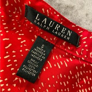 LRL Ralph Lauren Red Tan Long Sleeve Button Popover Split Hem Tunic Top Size S