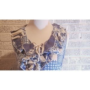 LRL Ralph Lauren Sleeveless Top Blue White ..more off white