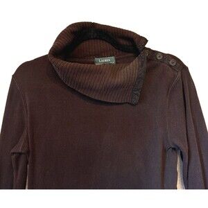 LRL‎ Ralph Lauren Sweater S Brown Shawl Collar Buttons 100% Cotton