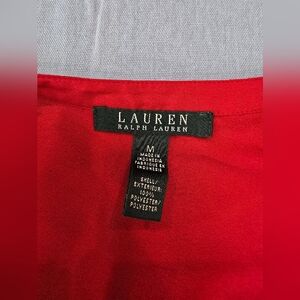 This LRL Ralph Lauren top is a stylish red peplum blouse with a V-neckline and long sleeves. It is made of polyester material and is machine washable, making it easy to care for. The top is suitable for casual occasions and can be worn in various seasons such as winter, summer, fall, and spring. With a classic and preppy style, this blouse from Lauren Ralph Lauren is a versatile piece that offers a comfortable fit for adult women in size medium.