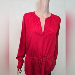 LRL Ralph Lauren Top Large Adult Red V Neck Peplum Blouse Long Sleeve Womens Med